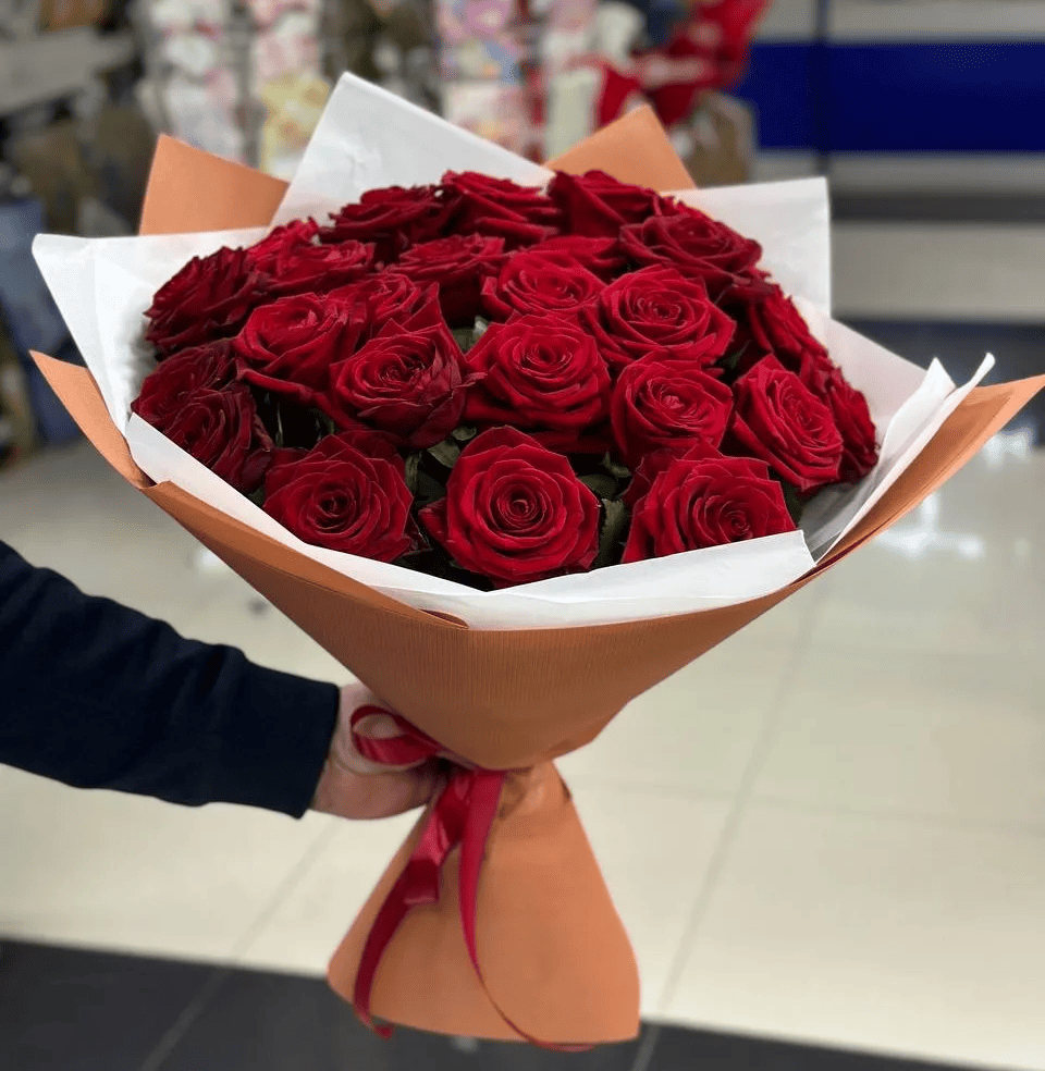 роза-21шт,упаковка, лента