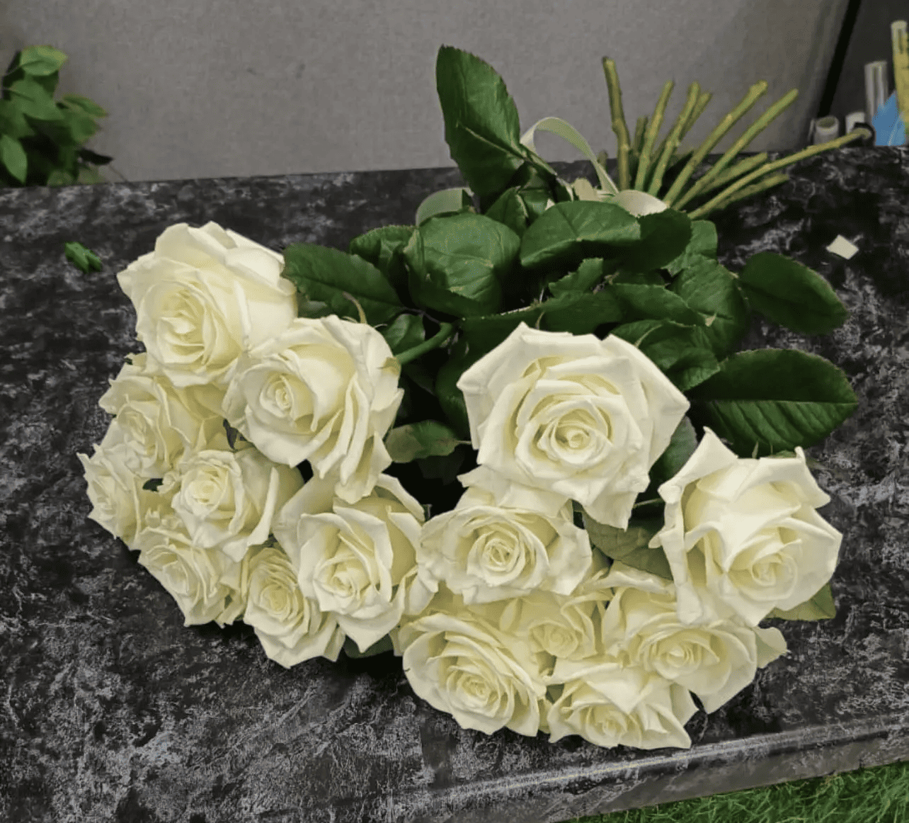 Изысканный букет из 15 белых роз - воплощение чистоты, гармонии и безупречного вкуса. Пышные свежие бутоны с нежными лепестками создают эффектную композицию, которая выглядит одновременно торжественно и утончённо. Такой букет идеально подойдёт для самых значимых моментов: признания в любви, свадьбы, юбилея или особого знака внимания.
