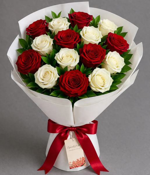 Букеты из красных и белых роз