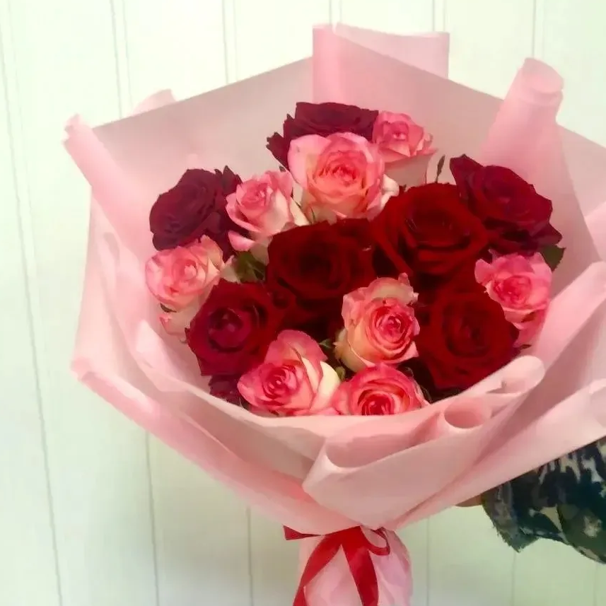 —Букет из 15 красно-розовых роз