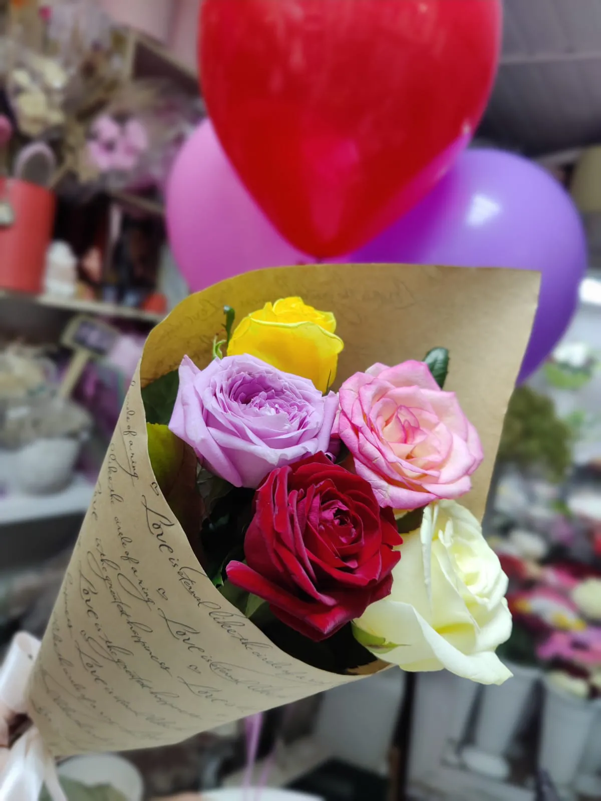 —Букет из 5 разноцветных роз