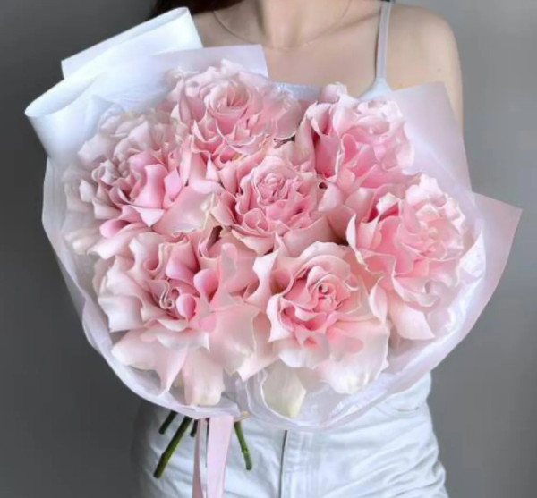 Букет 7 розовых роз Французская нежность