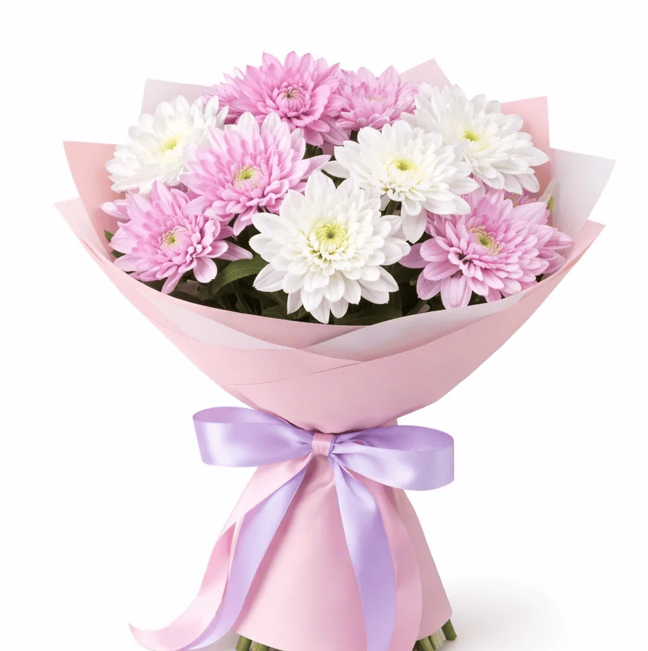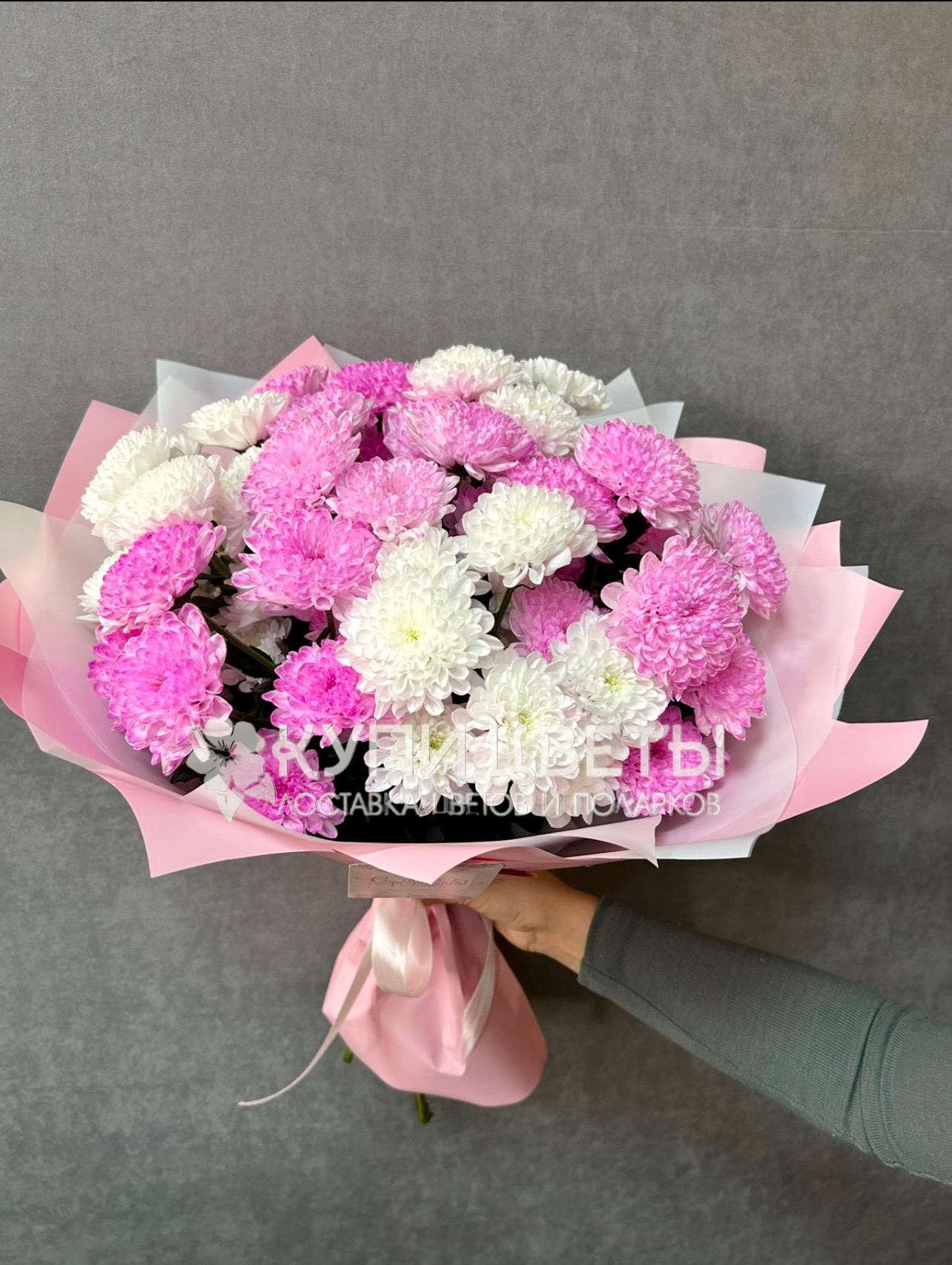 Кустовые хризантемы,упаковка,лента |