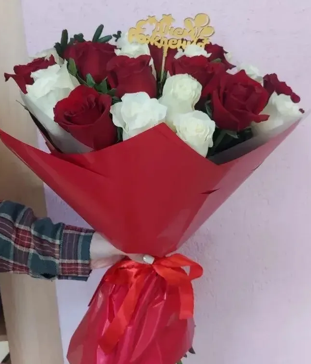 Красные и белые розы в красивой упаковке станут отличным подарком на день рождения. Букет универсальный, подарить его можно и маме, бабушке, любимой девушке, сестре и каждому он поднимет настроение и останется надолго в памяти!