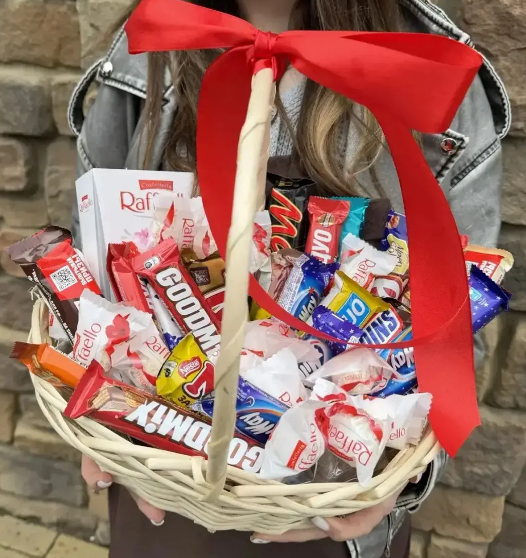 Сладкая корзина с шоколадными батончиками