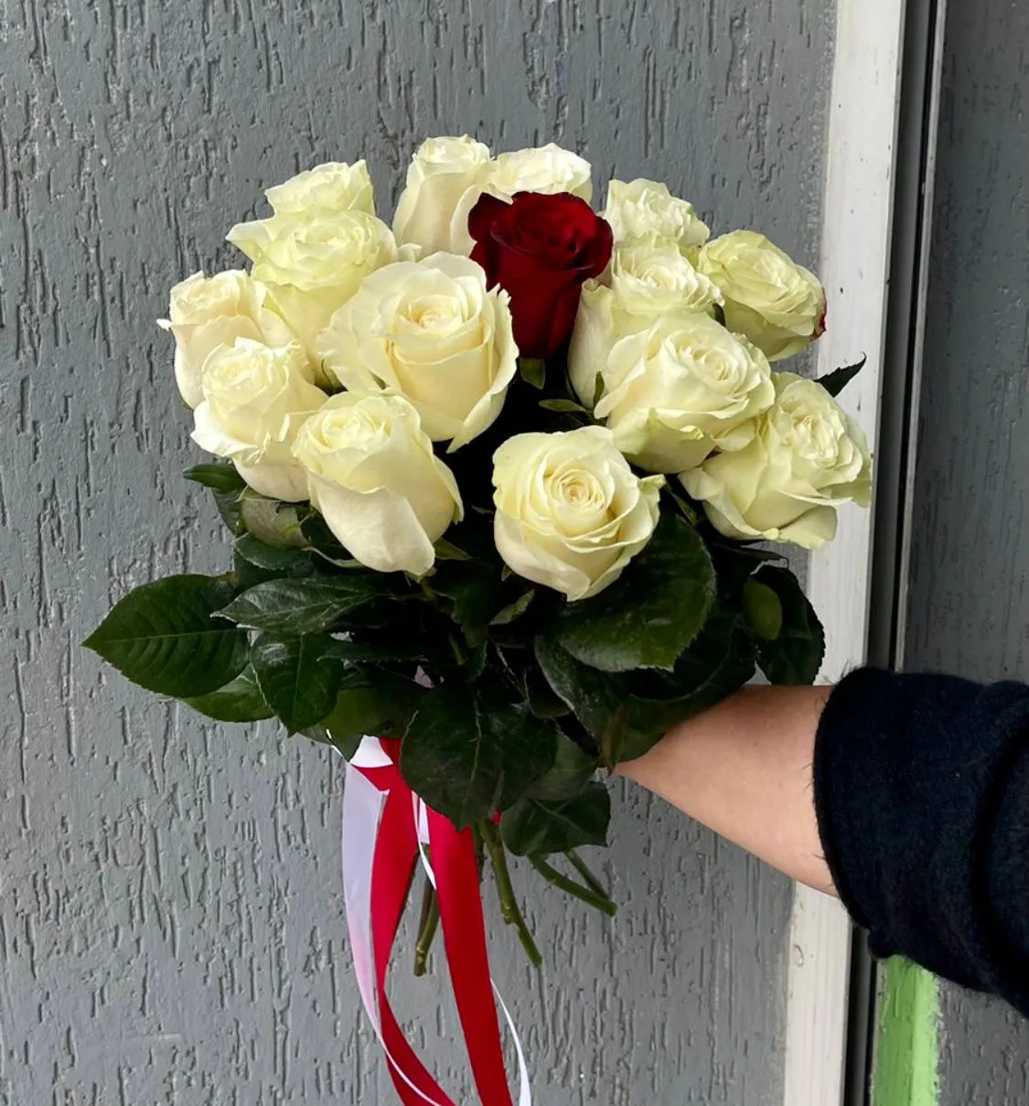 - Стандарт - 15 роз, лента
