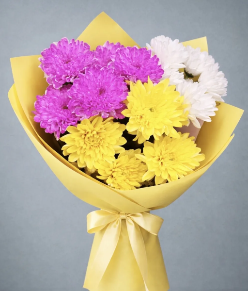 Кустовые хризантемы - 3 шт,упаковка,лента |