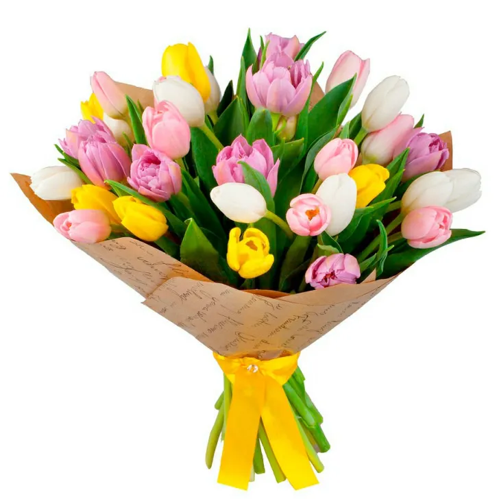 Тюльпаны микс,упаковка,лента |
