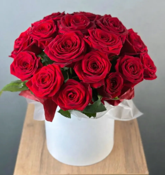 Шляпная коробка из красных роз Язык любви